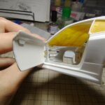 ドアのウィンドウは透明プラ板を使うため予め型を作っておきます。