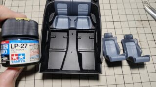 タミヤ 三菱 GTO プラモデル 製作。今回はパーツの塗装とデカール貼りです。