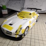 盛った瞬着や外装パーツのゲート跡を400番のペーパーで削って平滑にします。