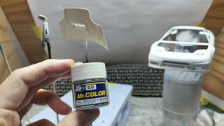 フジミ ホンダ NSX-R(NA2) のプラモデル製作。今回はボディの塗装とデカール貼りです。