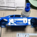 ボディカラーがブルーになるのでサフのグレーのままだと綺麗に発色しません。